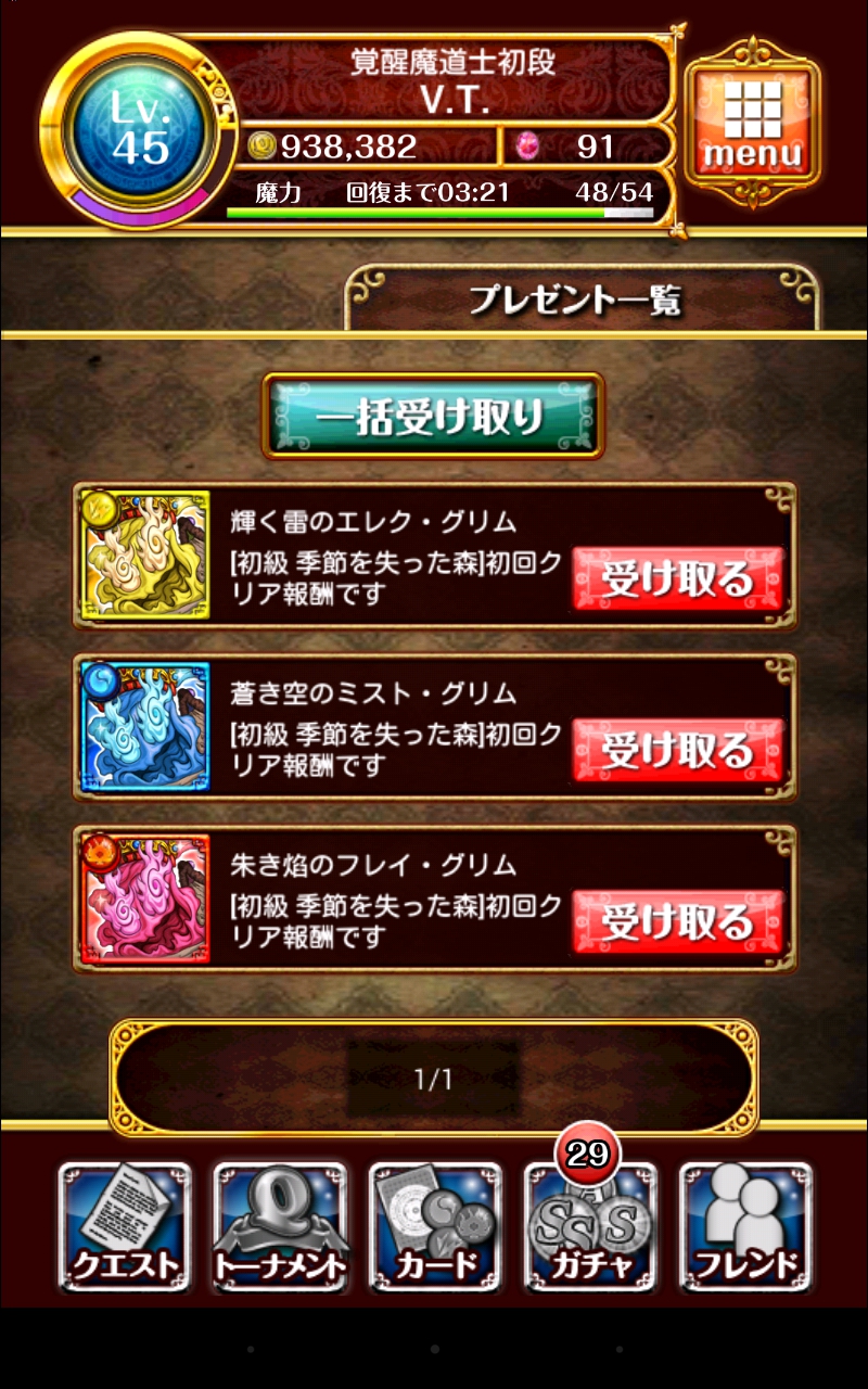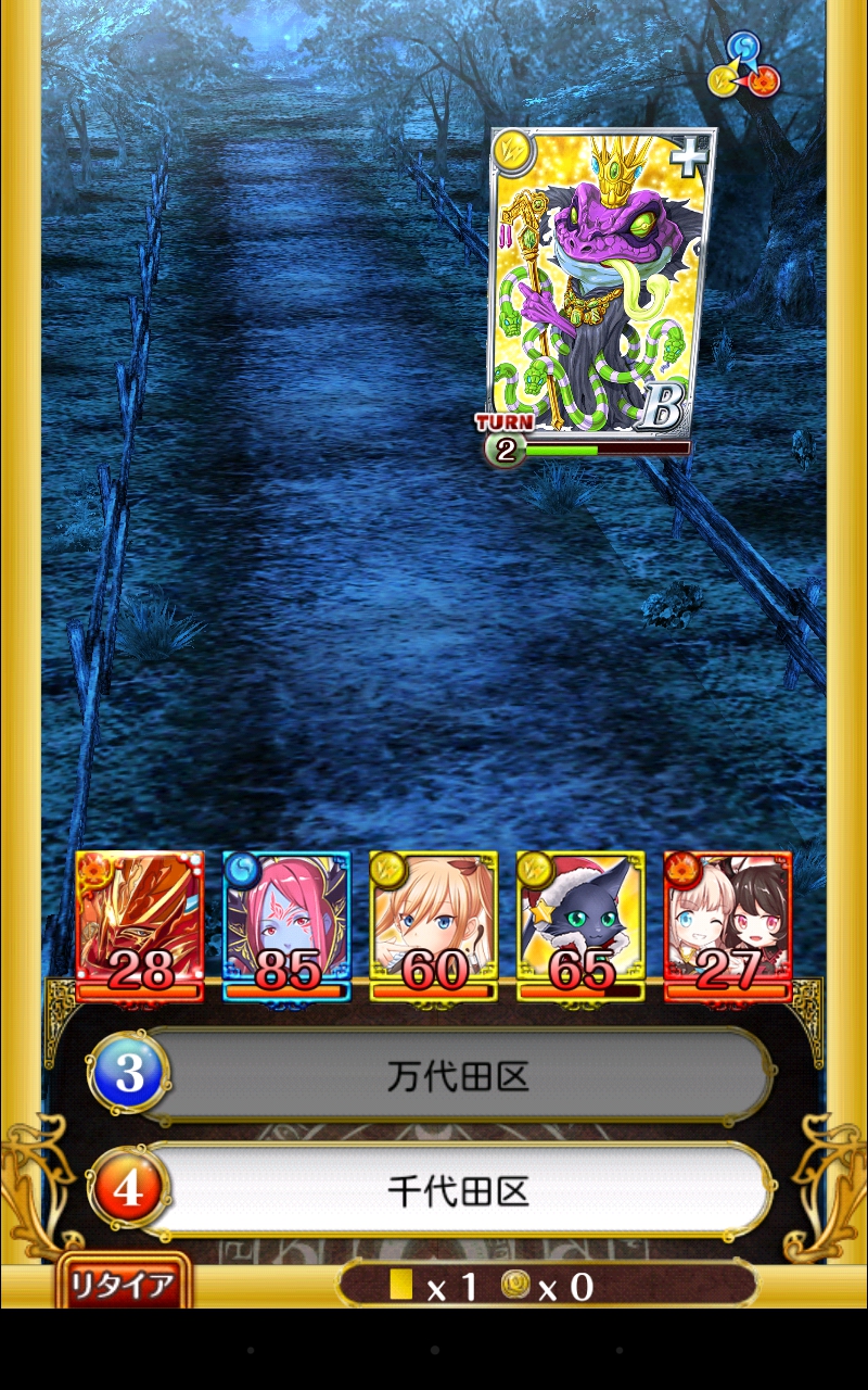 古の森の千年桜 初級・中級に行ってみた! 攻略 公開日時:2014年3月28日 11:11 PM ページタイトルとURLをコピーする 古の森の千年桜 攻略日記 初級・中級 桜の季節がやってきました! 魔法使いと黒猫のウィズでも桜のイベントが始まりましたね。 早速初級と中級に行ってきました。 まずは初級です。 このカエルは全体攻撃をしてきますので注意。 敵はあまり強くない気がします。 猫ウィズのスキルで一掃できるくらい。 BOSSです。 えー、攻撃を受けてみるのを忘れました・・・! スミマセン。 多分そんなに強くないです。 クリア報酬がオイシイ!! 続いて上級へ。 ページ: 1 2 次ページへ SQOOLのYouTubeチャンネル スポンサーリンク スポンサーリンク