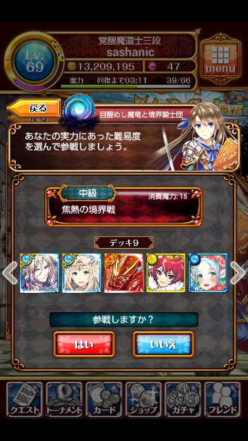 最初は中級で消費魔力15 に参戦してみます。