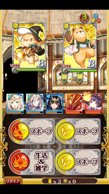 敵が雷属性のAが2枚・Bが1枚です。