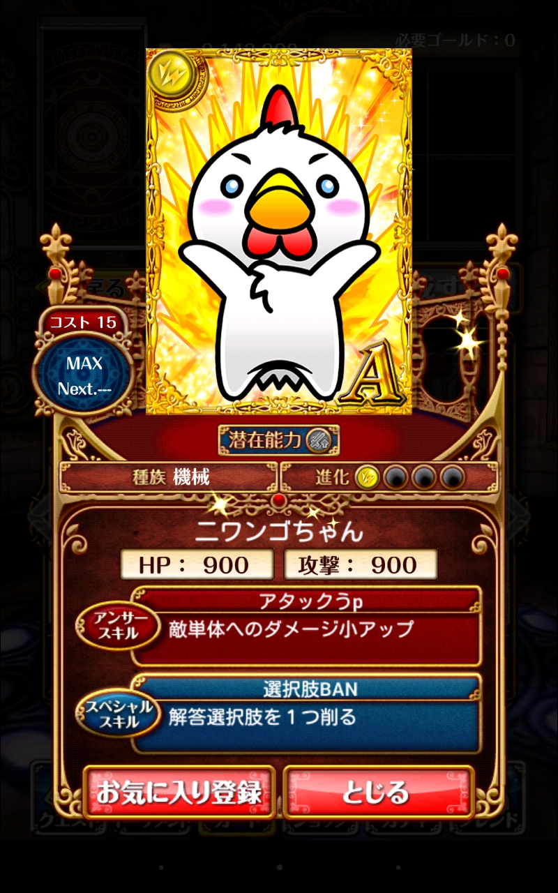 ニコニコ生ダンジョン プレミアム級 ニコ動(Q) 攻略 攻略 公開日時:2014年4月27日 1:12 AM ページタイトルとURLをコピーする プレミアム級(Q)は中級者でも攻略可能! ウィズとニコ生のコラボダンジョン「ニコニコ生ダンジョン」のプレミアム級。 中級者でも意外とノーコン攻略可能です! パーティーは赤一色がお勧め。 被ダメージはこんな感じです。 青色の敵も出てきて苦戦するところもありますが、 中級者でも何と行ける難易度。 雑魚との戦いでかなりやられましたが BOSSは雷属性1体。 スキルを使いまくり、 火力で押し切ります! 無事攻略しました! プレミアム級でもニワンゴちゃんがもらえます。 SQOOLのYouTubeチャンネル スポンサーリンク スポンサーリンク