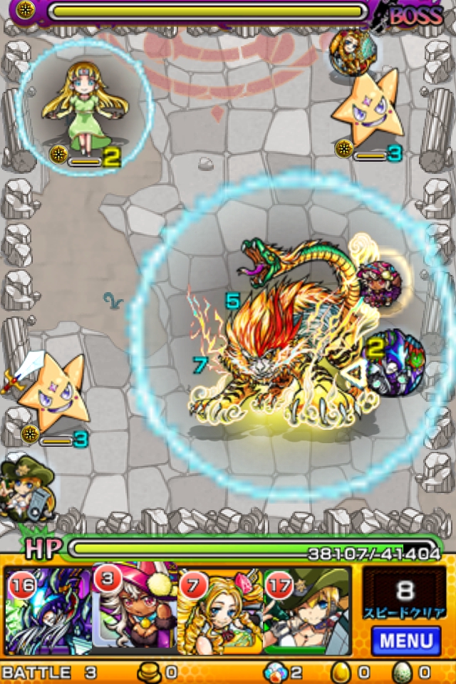 そのような方は、直接ダメージを与えずに、友情コンボによるダメージを多様していくと、クリアしやすいようです。