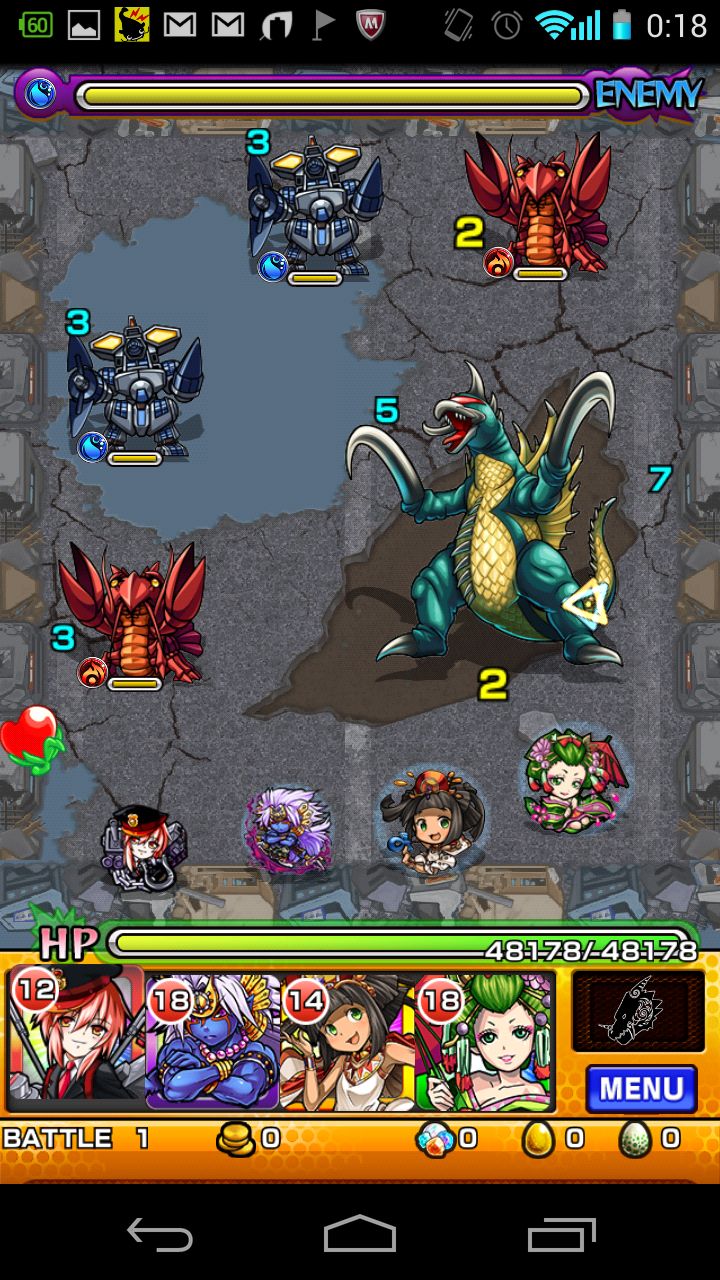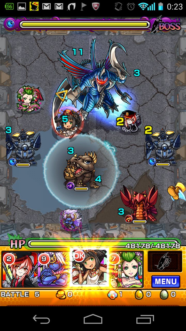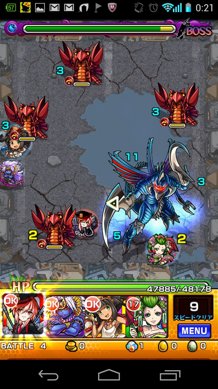ステージ4では、ミニデストロイア4体、ボス1体が登場します。やはり、水属性モンスターでパーティを組むほうが良いようです。