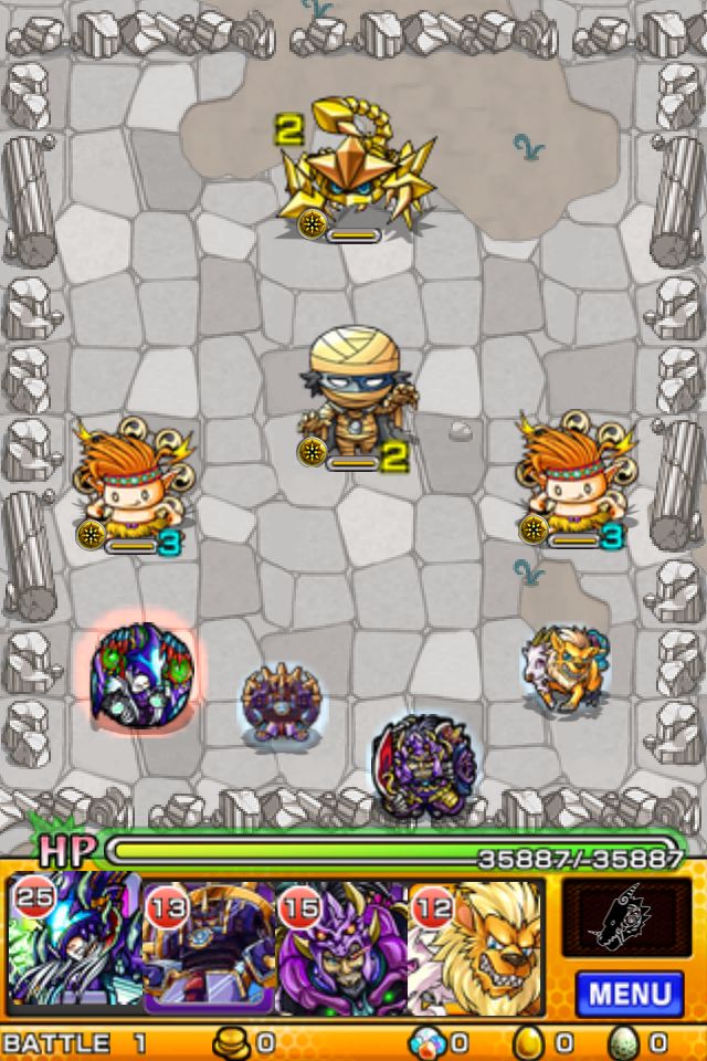 最終ステージでは、ロウリィ1体、サソリ1体、ゾンビ1体、ハトホル1体が登場します。