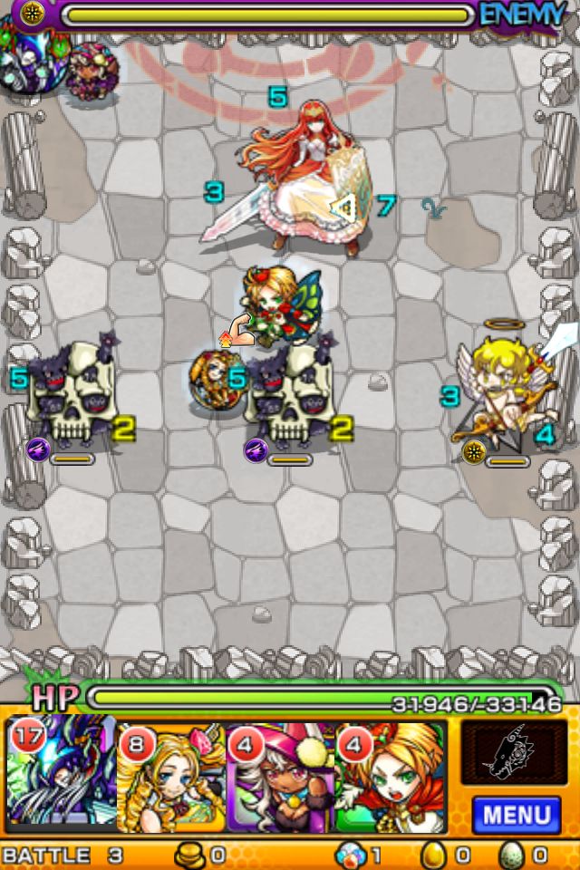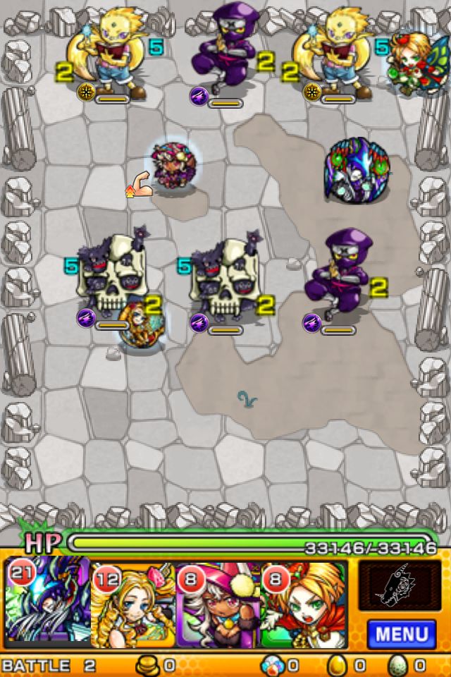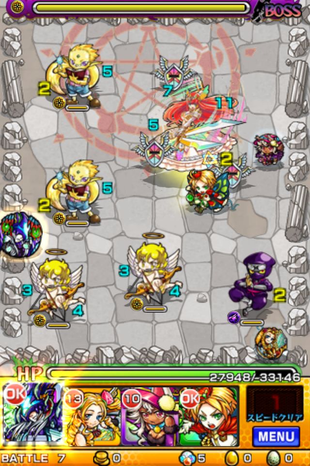 いづれもレア度2なので、強くはないのですが、やはり2種類の攻撃によるダメージにだけ注意しなければいけません。