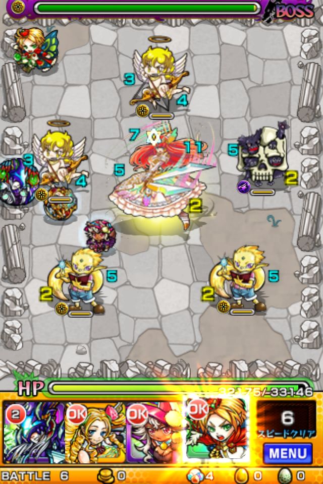 ステージ6では、ロウリィ2体、ドクロッチ1体、キューピッド2体、永守姫エタニティ1体が登場します。
