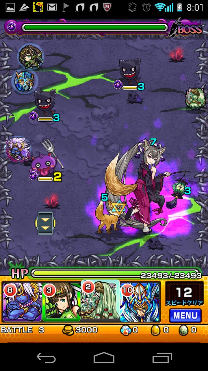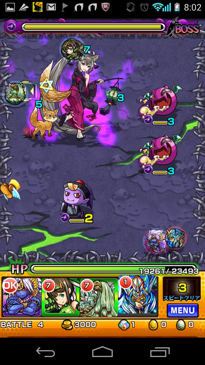 最終ステージでは、クロン2体、新モンスター1体、ボスのイズナ1体が登場します。ボスのイズナに攻撃を集中させて、一気に倒してしまいましょう。