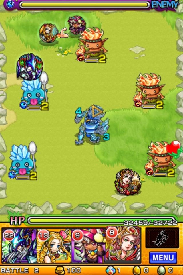ステージ2では、ヒーコロ3体、アイスリン2体、アイスナイト1体が登場します。