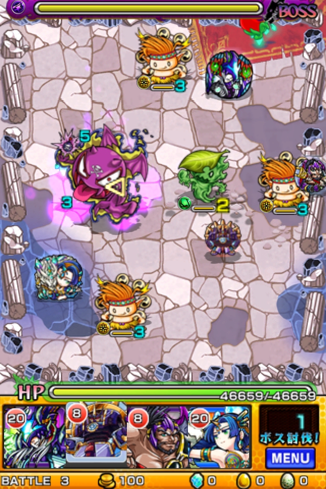 中ボスでもあるドクロッチは、レア度2と低めなので、攻撃を集中させて倒してしまいましょう。