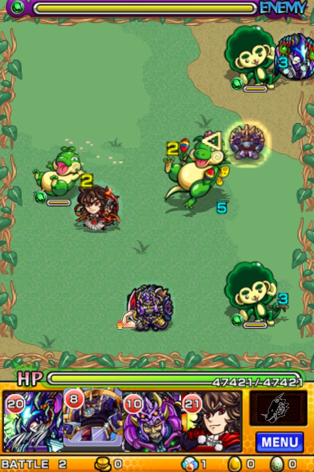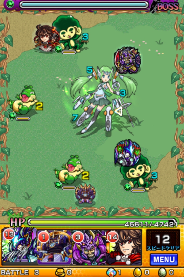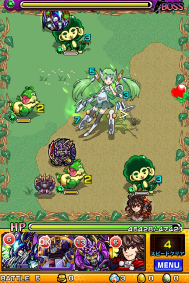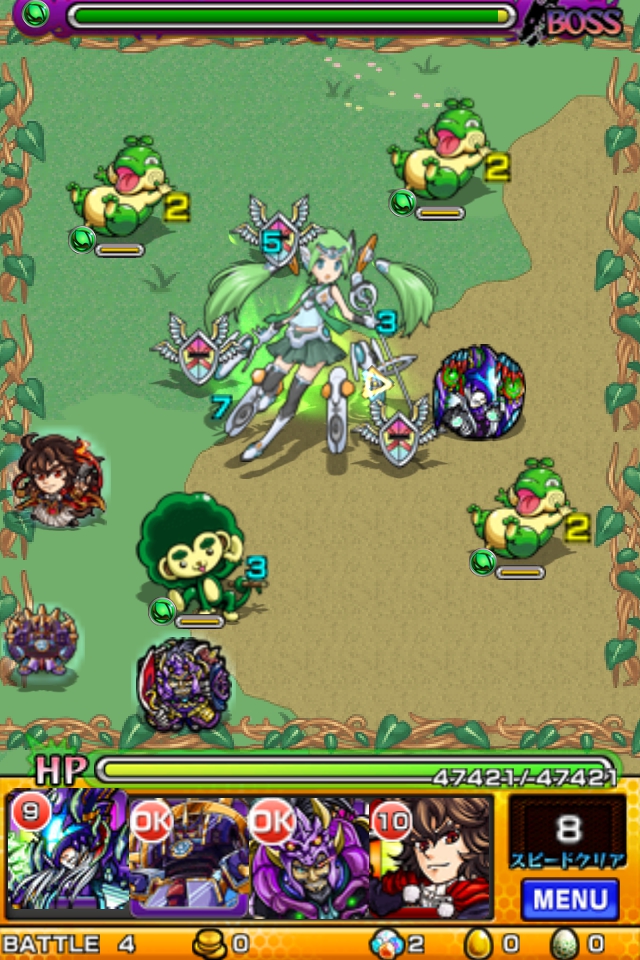グリーンリドラの攻撃は2ターンですので、念のためHPが削られないように注意しましょう。先にグリーンリドラを倒しておくと良いでしょう。