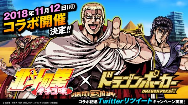 『ドラゴンポーカー』×『北斗の拳 イチゴ味』のコラボイベントが11月12日(月)より開催決定!これを記念したリツイートキャンペーンも本日より開催!