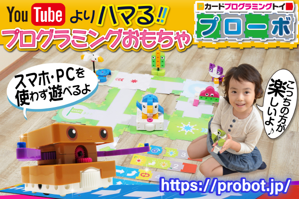忙しいお母さんの自由時間が増える、小さい子供でも一人で遊べる「プログラミングおもちゃ」【プローボ】!遊ぶだけでいつの間にかプログラミングが好きになるから、TVゲームとちがって、親の罪悪感はゼロ♪