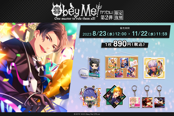 株式会社インクルーズ(東京都渋谷区、代表取締役社長 山﨑 健司)が企画・運営するフィジカルグッズのオンラインくじ「カワセルくじ」にて、8月23日(水)より、「Obey Me! 第2弾」のくじが【復刻版】として再販開始になりましたことをご報告させていただきます。