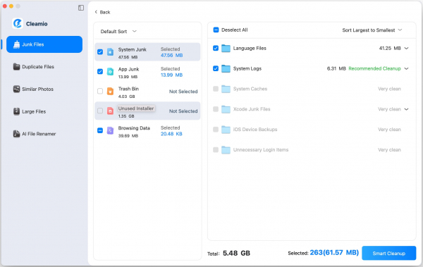 ステップ3: スキャン後、結果を確認し、AIによる推奨を参考にして不要なファイルを自動的に削除します。