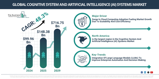 より多くの組織が日常業務に人工知能を組み込む中、認知システムおよび人工知能システムの世界市場は、ほとんどの技術分野を上回る速度で拡大している。あらゆる業界の企業は、実験段階から本格導入へと移行し、膨大なデータの解釈、意思決定の高度化、業務フローの自動化、顧客エンゲージメントの向上のために人工知能を活用している。この変化により、急速な市場成長に適した環境が生まれ、認知型人工知能は戦略的構想から業務上の優先事項へと進化している。