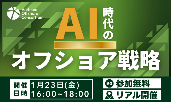 一般社団法人ベトナムオフショア開発協会(所在地:東京都港区、代表理事:柴田 達真)は、2026年1月23日(金)に「AI時代のオフショア戦略」セミナーを開催いたします。