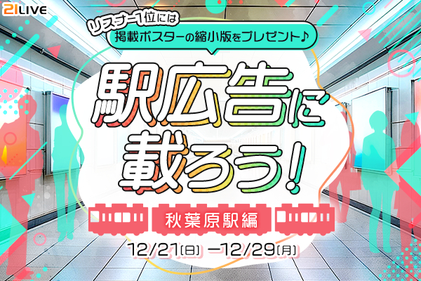 【21LIVE】12月21日(日)より『駅広告に載ろう!~秋葉原駅編~』開催!上位入賞で駅ポスター掲載&限定バッジをゲット 【ドリームニュース】