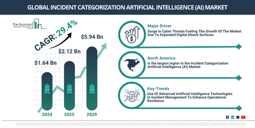 インシデントを自動で分類する人工知能は、IT運用やサイバーセキュリティの分野で欠かせない技術となりつつあります。市場規模は2024年の$1.64十億から2025年には$2.12十億に高まり、年平均成長率は29.7パーセントと予測されています。ITサービス管理への人工知能の導入、迅速なインシデント対応の必要性、自動化の拡大、ITサービス問い合わせ件数の増加などが成長の背景にあります。