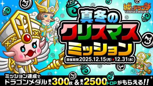 株式会社アソビズム(本社:東京都千代田区、代表取締役:大手智之)は、App Store・Google Playにて好評配信中の『城とドラゴン』で、「真冬のクリスマスログインボーナス」と「真冬のクリスマスミッション」を2025年12月15(月)より開催いたします。