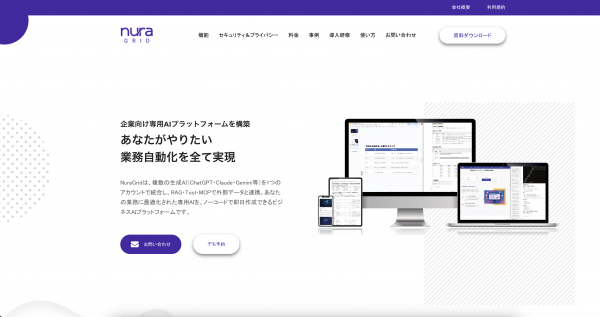 事業内容:社内にエンジニアがいなくても大丈夫!企業向けのノーコードAI作成ツール「NuraGrid」事業、SaaS事業