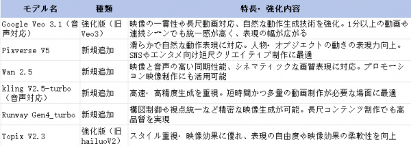 生成された動画は、環境音や音声ナレーション、BGM との同期が改善されており、視覚と聴覚の一体感がより自然な動画制作が可能です。