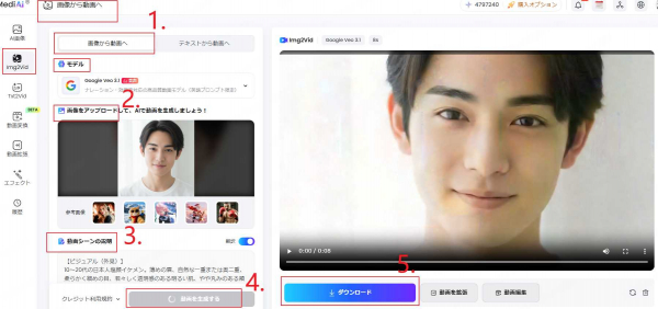 画像から動画へ:https://jp.topmediai.com/app/image-to-video/