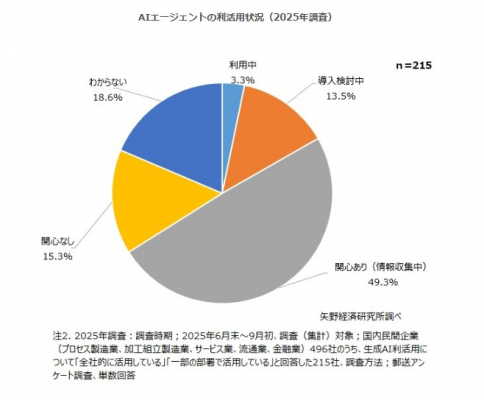 【矢野経済研究所プレスリリース】国内生成AI/AIエージェントの利用実態に関する法人アンケート調査を実施(2026年)~生成AI活用している企業は4割を超える一方、AIエージェントはわずか3%~ 【ドリームニュース】