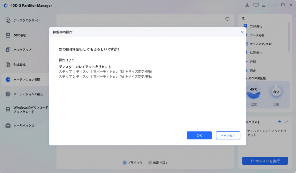 4DDiG Partition Manager は、パーティション管理に特化したツールで、HDD や SSD のパーティション容量を簡単かつ安全に調整できます。複雑な操作を行う必要がなく、初心者でも直感的にストレージの最適化を進められる点が特長です。