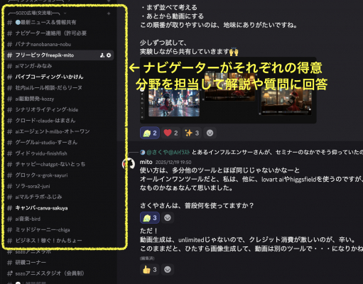 初心者専用Q&Aチャンネルを設置し、「質問すること自体が学びになる」文化を明確に打ち出しています。