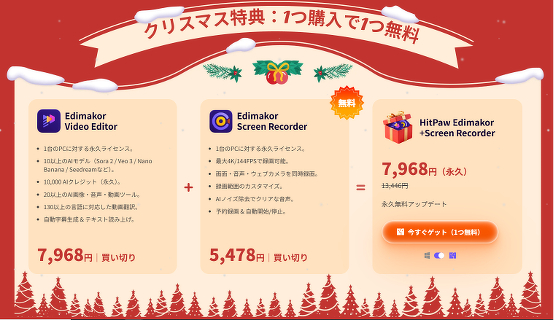 年末年始限定|最大60%OFF+買い切り特典 AI搭載動画編集ソフト「HitPaw Edimakor」特別キャンペーン実施