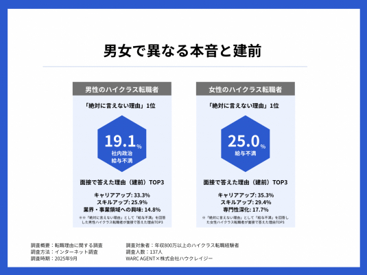 本調査から、ハイクラス転職者が面接で語る理由と、実際に抱えている本音の乖離が明らかになりました。
