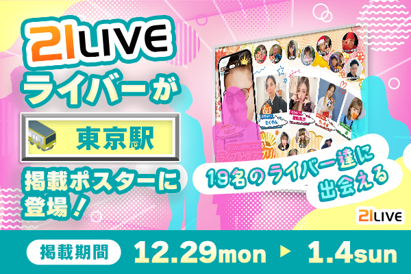 【21LIVE】東京駅に19名のライバーが登場!12月29日(月)より年末年始限定21LIVEポスターを掲出