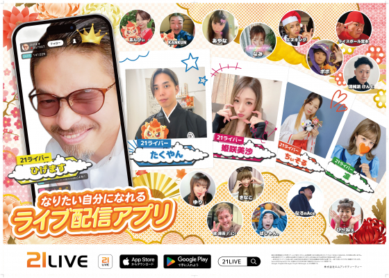 ポスターに掲載しているライバーの配信は、21LIVEのアプリ・サイトでご覧いただけます。