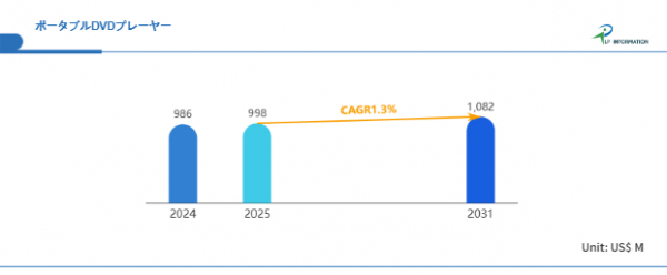 LP Information調査チームによる「世界ポータブルDVDプレーヤー市場の成長予測2025~2031」(https://www.lpinformation.jp/reports/56546/portable-dvd-player)では、2025年から2031年の年平均成長率(CAGR)はマイナス1.3%とされ、2031年には市場規模が10.82億米ドルに達すると見込まれている。この予測は、家庭用としての一般需要が減少傾向にある一方で、産業用途や開発途上国市場、インフラ制約のある地域における継続的需要が市場の下支え要因となることを示唆している。