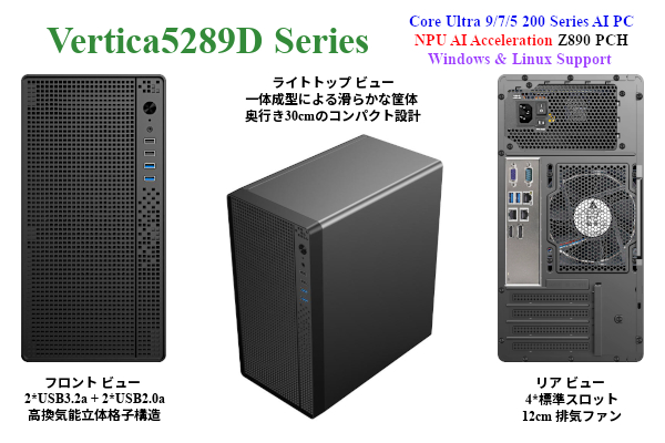 新製品 Core Ultra 9/7/5 200s, NPU & Z890 搭載, Windows & Linux OSサポート, コンパクト AI-PC「Vertica-5289D」シリーズの御紹介