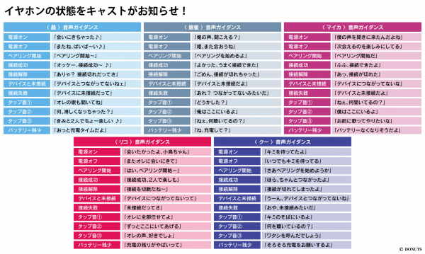 本コラボレーションモデルは、全5種類展開で「Team K」から銀星(CV:小林裕介)、「Team W」から晶(CV:沖野晃司)、「Team P」からマイカ(CV:村瀬歩)、「Team B」からリコ(CV:小笠原仁)、「Team C」からクー(CV:小林ゆう)のボイスは完全録り下ろしにてイヤホンに内蔵されます(全11ワード)。また本体は全種黒で統一、ゲームタイトルや各Teamロゴを各キャラクターの色で装飾した高級感があり普段使いができるワイヤレスイヤホンとなっております。