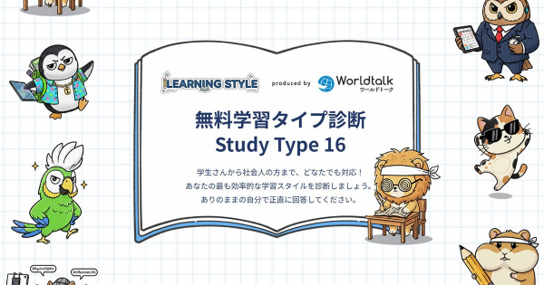 株式会社ライトアップ(本社:東京都渋谷区、代表取締役社長:白石崇、以下ライトアップ)が運営する「ワールドトーク」(https://www.worldtalk.jp/)は、2026年1月7日(水)より自分の学習スタイルが診断できる無料の学習タイプ診断のコンテンツを公開いたします。本診断は会員登録不要で、どなたでもご利用いただけます。