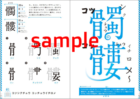 代表作「鬱」「薔薇」「髑髏」の他、地名「岐阜」「札幌」や国名「仏蘭西」「西班牙」、「烏龍茶」「混凝土(コンクリート)」、 「魑魅魍魎(ちみもうりょう)」の覚え方も掲載