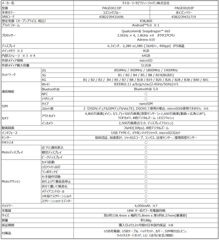 3.対象商品 moto g8 plus(*1)(*2) (*3)(*4)