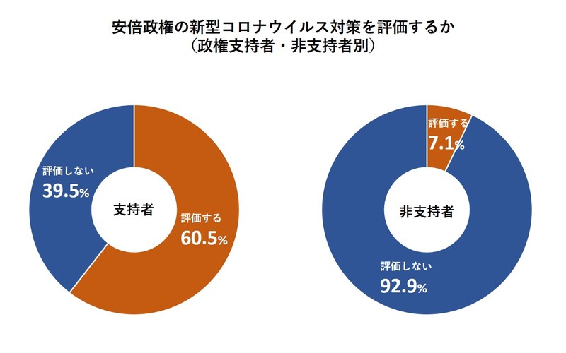 安倍政権の新型コロナ対応について、全体の76%が「評価しない」と回答