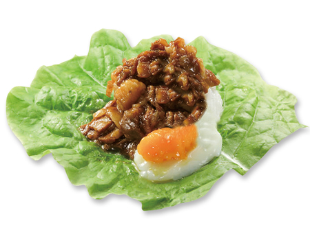 旨だれ牛カルビの上に、すき焼き風の牛肉をこぼれるほど「てんこもり」にトッピング。