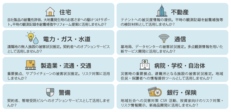 大地震発生時の初動対応に役立つだけでなく、様々な業界・サービスで活用できると考えます。