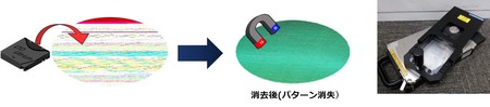磁気記憶媒体に対し、強力な永久磁石による「表面水平磁力」にてデータ面の磁気破壊を行います。媒体1本につき短時間で、お客様先での作業が可能です。