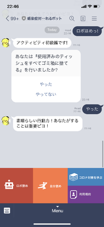 感染症対策活動をほめてくれるボット
