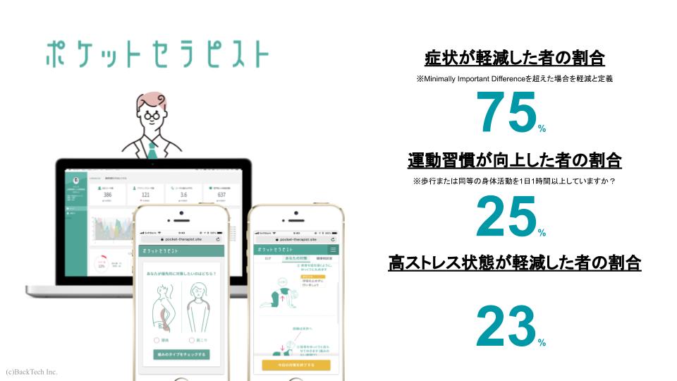 株式会社バックテック(本社:京都府京都市、代表取締役社長:福谷直人 以下:バックテック)とオムロン ヘルスケア株式会社(本社:京都府向日市、代表取締役社長:荻野勲 以下:オムロン ヘルスケア)とは、バックテックの肩こり・腰痛対策サービス”ポケットセラピスト”とオムロン ヘルスケアの低周波治療器を使用したテレワーク実施者向けの腰痛対策支援サービスの実証実験協力企業を抽選5社限定で募集いたします(完全無料)。