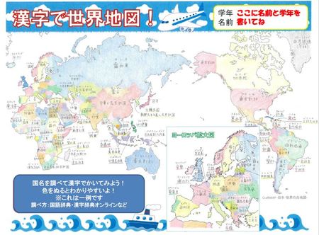 「ワークシート 漢字で世界地図」