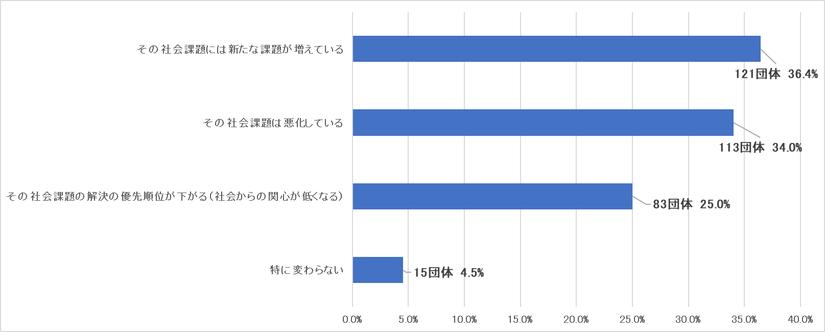 ■96%の非営利団体が、新型コロナウィルス感染拡大は、取り組んでいる社会課題、支援している対象者に深刻な影響があり、社会的な課題はより悪化、複雑化していると考えている。