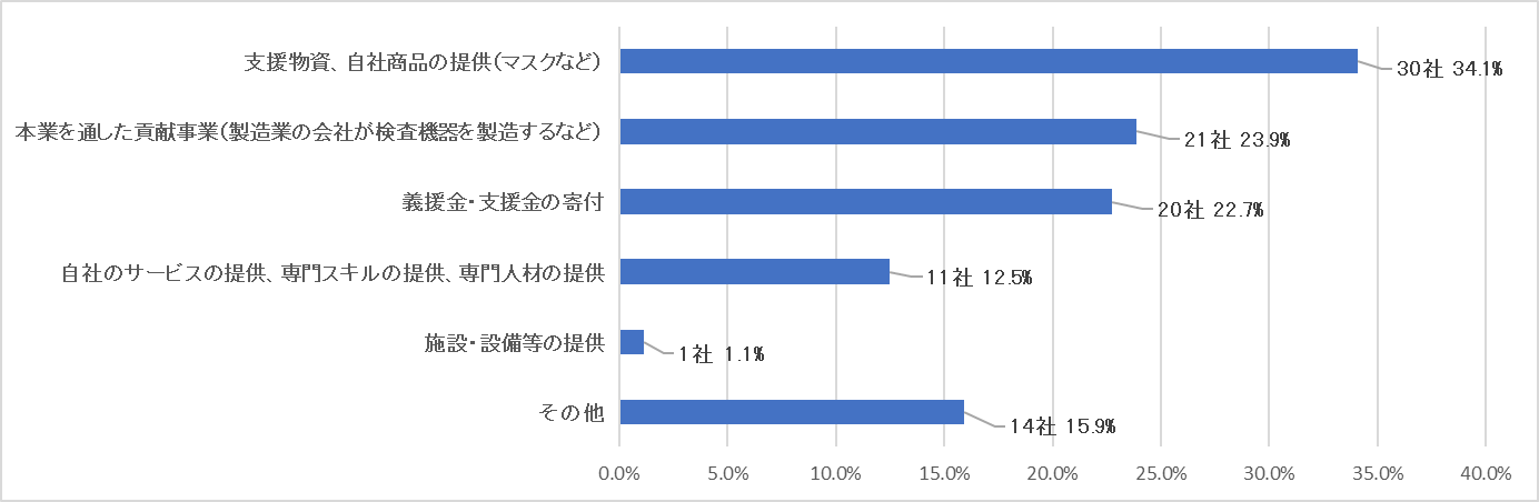 ■新型コロナウィルス感染拡大を受け、企業として「支援物資・自社商品の提供」、「本業を通じた貢献活動」「義援金・支援金の寄付」等の活動を行なっている。