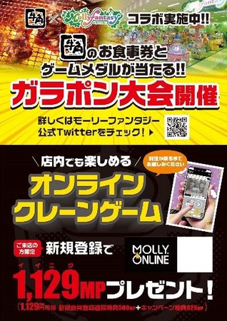 「牛角」「しゃぶしゃぶ温野菜」店内でも楽しめるオンラインクレーンゲーム「モーリーオンライン」であそべるポイント1,129MPプレゼントします。詳しくは「牛角」「しゃぶしゃぶ温野菜」店内のPOPをご覧ください。