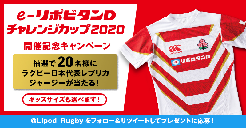 オンラインビデオゲーム 「eリポビタンDチャレンジカップ 2020」に特別協賛 ラグビー日本代表レプリカジャージーが当たる開催記念キャンペーンも実施