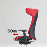 周囲の視線を遮り集中力を高めるヘッドパネル、可動ヘッドレスト付き。前傾・後傾ポジションのどちらにも対応。シンクロリクライニング機構付き、座面の奥行き・座面の高さ・肘(3D)の調整が可能